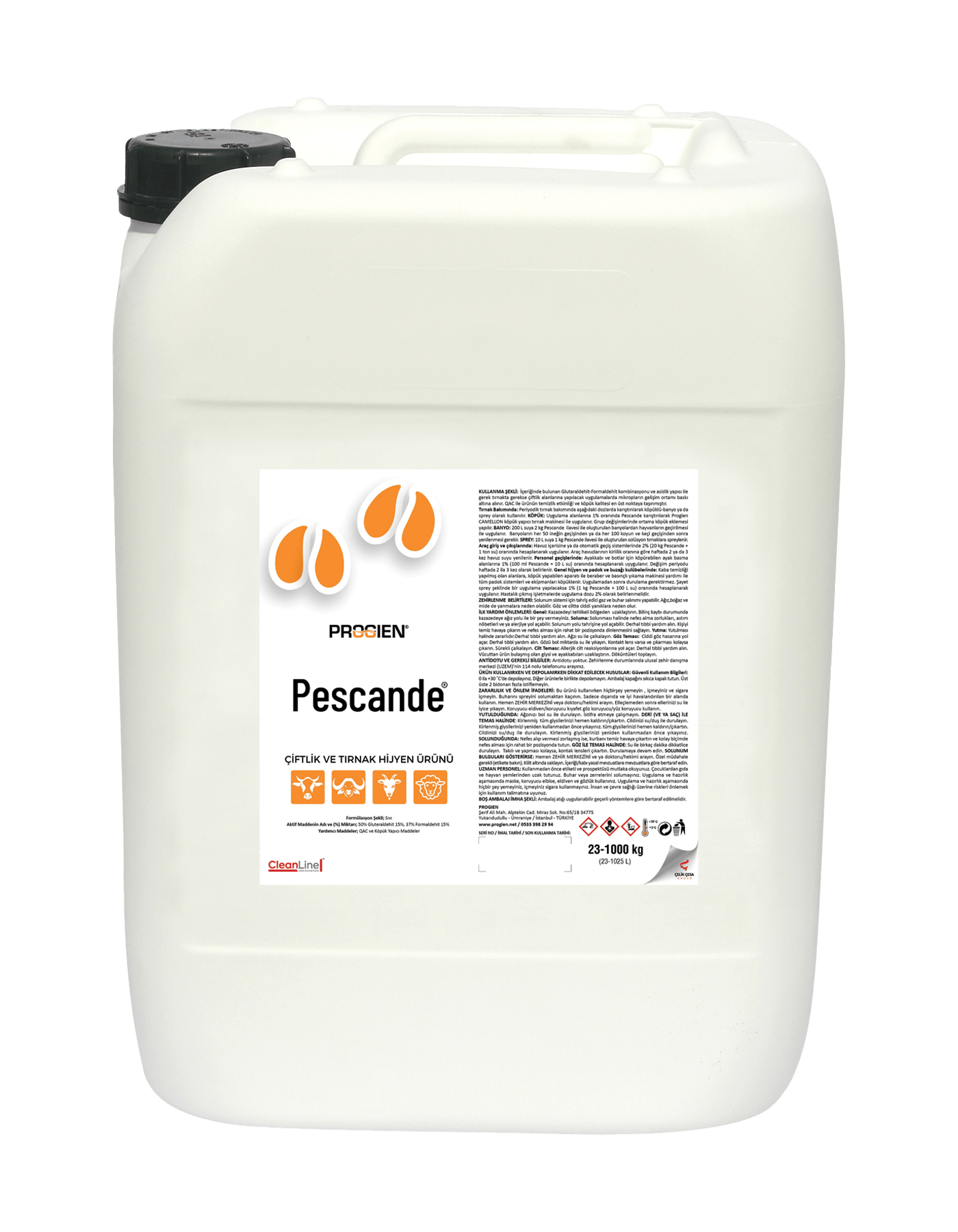 Pescande®, Progien’in ürettiği özel bir tırnak bakım ve hijyen ürünüdür. İçeriğinde glutaraldehit, formaldehit ve quaternary ammonium compounds (QAC) bulunmaktadır. Ayak havuzunda kullanım konsantrasyonu 100L suya 1L üründür ve koruyucu amaçlı olarak kullanılır. Sprey kullanımı ise bireysel olarak hayvanlarda saf şekilde uygulanabilir.